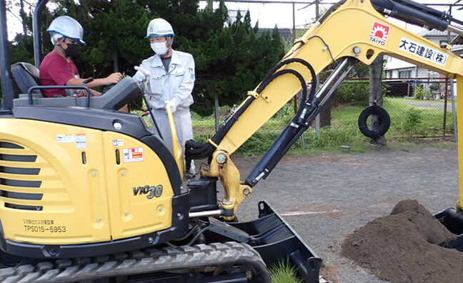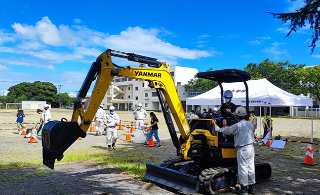 パワーポイントを使用した座学では、懸命にメモをとったり、真剣なまなざしで講話を聞き、重機操作体験では晴れた天候の中はもちろん、降雨の中でも笑顔がこぼれ、交替の合図がかかると「えーっ もっとやりたい!すごく楽しい!」と心躍らせる姿を見ることができました。